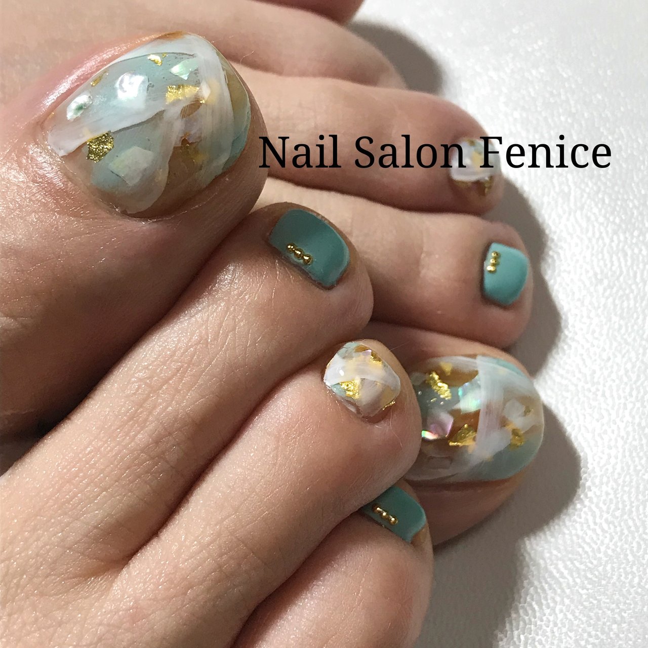 大理石アートが素敵 ブルーグリーンのフットネイル Nail Salon Freestyle